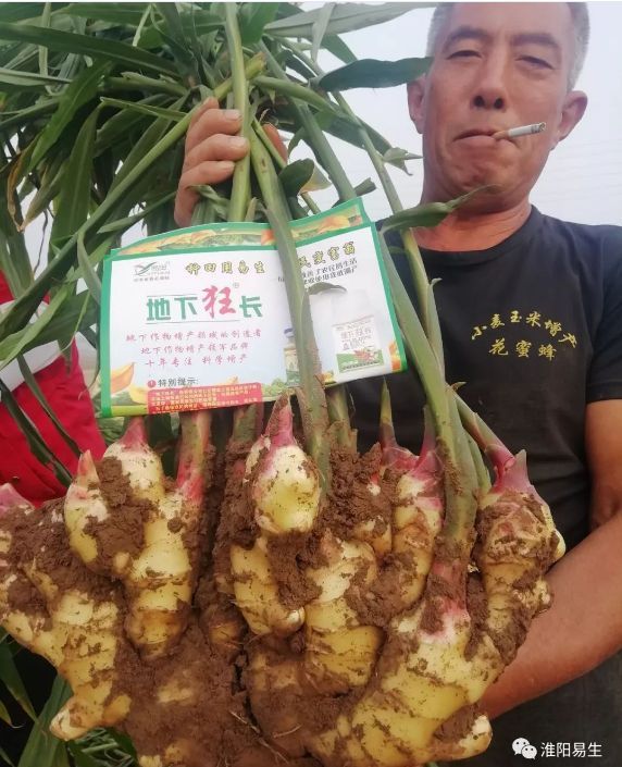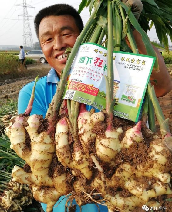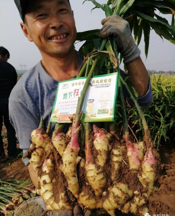 我們易生科技售后服務(wù)組人員開(kāi)車(chē)在路上時(shí),農戶(hù)大哥看到地下狂長(cháng)的車(chē),停下來(lái)讓看看他的大姜,今年噴施地下狂長(cháng)六遍,今年的姜格外的胖、老氣!